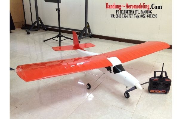 Description : Pesawat Model Radio Control Trainer TS40 Engine. Dalam Kondisi Baru. Sayap dan ekor dari Kayu Balsa sudah dirakit dan dicover film. Bentang sayap 160 cm. Konstruksi badan fuselage dari fiberglass epoxy. Konstruksi Wing dan Tail dari kayu Balsa dilapis film. Dilengkapi gambar konstruksi atau plan 1:1. Berat tinggal landas 2 - 3.5 kg. Kendali terbang Aileron, Elevator, Throttle,Rudder. Dilengkapi Engine OS46AX/ Setara, Servo Standar S3003/Setara, Glow Stater, Propeller 10x6/Setara.