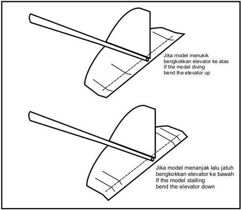 Pesawat yang melayang hingga sejauh lebih dari 6 meter dikatakan sudah layak terbang, sedangkan pesawat yang masih menukik (diving) atau menanjak lalu jatuh (stalling) berarti perlu di trim ekor horizontalnya dengan cara dibelokkan sisi belakangnya ke atas atau ke bawah.