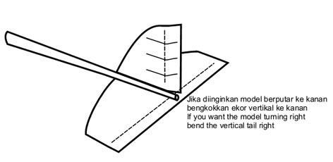 Agar terbangnya tidak terlalu jauh, upayakan agar pesawat dapat terbang berputar ke kiri atau ke kanan dengan cara membelokkan ekor vertikalnya ke arah yang diinginkan, misalnya kita ingin pesawat berputar membelok ke kanan, maka ekor vertikal di belokkan sisi belakangnya 3 derajat ke kanan.