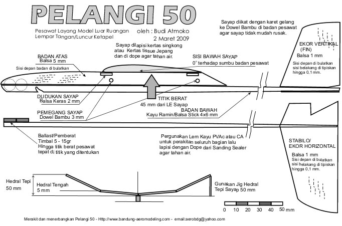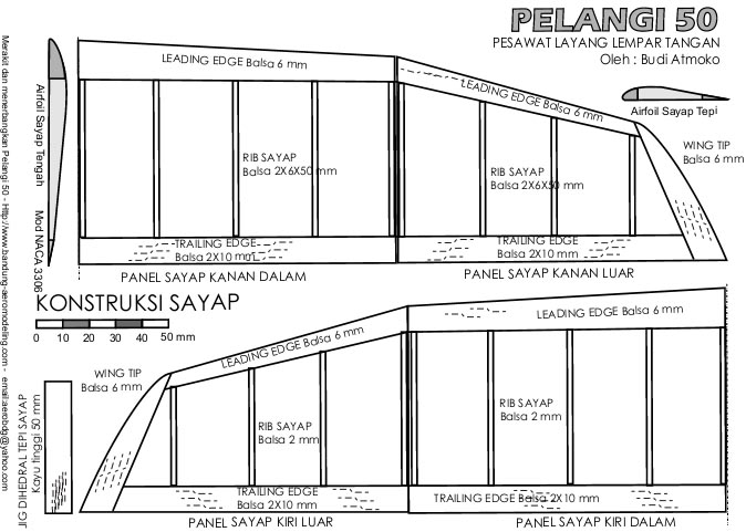 Struktur pesawat Pelangi 50 yang terbuat dari kayu balsa kalau patah atau terlepas dari sambungannya dapat direkatkan atau disambung kembali dengan lem CA. Hal yang perlu diperhatikan adalah sudut-sudut dan dimensinya harus tepat seperti gambar rencana (plan).