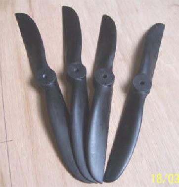 Propeler atau baling-baling untuk pesawat model saat ini diproduksi secara masal maupun semi masal dari bahan kayu, nilon, carbon fiber maupun plastik. Dimensi propeler yang perlu kita ketahui selaku penggunanya pada pesawat terbang model adalah diameter dan pitch. Kedua besaran ini secara berurutan dituliskan pada sebuah propeler dengan satuan inchi. Sebagai contoh sebuah propeler berukuran 10”x6” mempunyai arti propeler tersebut berdiameter 10 inchi dan mempunyai pitch atau jarak maju per putaran adalah 6 inchi