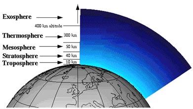 | Exosphere | Above a height of about 500km is the exosphere, a layer where the atmosphere merges into space. Satellites are stationed in this area, 500km to 1000km from Earth. nbsp; |
