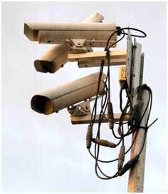 Surveillance equipment is a broad term encompassing a wide range of equipment used to observe what people are doing, either overtly or covertly. Although many people think of surveillance equipment as being in the realm of spies and espionage, the most common surveillance equipment seen today is the simple closed-circuit television (CCTV) camera. These cameras are seen in banks, football stadiums, many stores, or around the streets of countries such as the United Kingdom. Although the term may be used to describe any surveillance device, today, it is most often used to describe electronic devices, as opposed to analog devices such as binoculars or fingerprinting equipment.