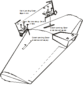 Tangkai roda pendarat utama sebanyak dua buah dipasangkan pada posisi yang diinginkan di sisi bawah sayap. Dudukan roda pendarat dari kayu keras sudah disiapkan dan pergunakan klem plat logam dan 4 skrup 3 mm untuk menguncinya dengan kuat tangkai roda sehingga tidak mudah bergerak atau terlepas.