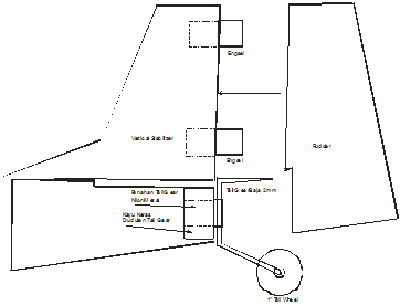Roda belakang atau Tail gear dipasangkan pada badan bagian belakang dan dihubungkan dengan kemudi belok atau rudder.