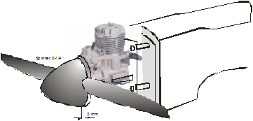 3. Pasangkan engine pada celah yang telah disediakan. Harus ada sedikitnya celah sekitar 3mm antara sisi badan bagian depan dan sisi belakang spinner.
